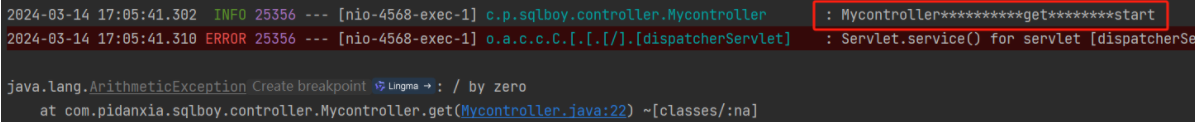 比如我故意写一个报错:int i = 2/0;