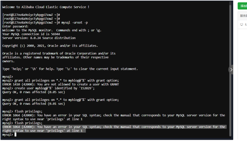 另外,再补充一部分以下是MySQL 8版本创建用户(赋予所有访问权限)的方法(刷新权限是flush privileges)